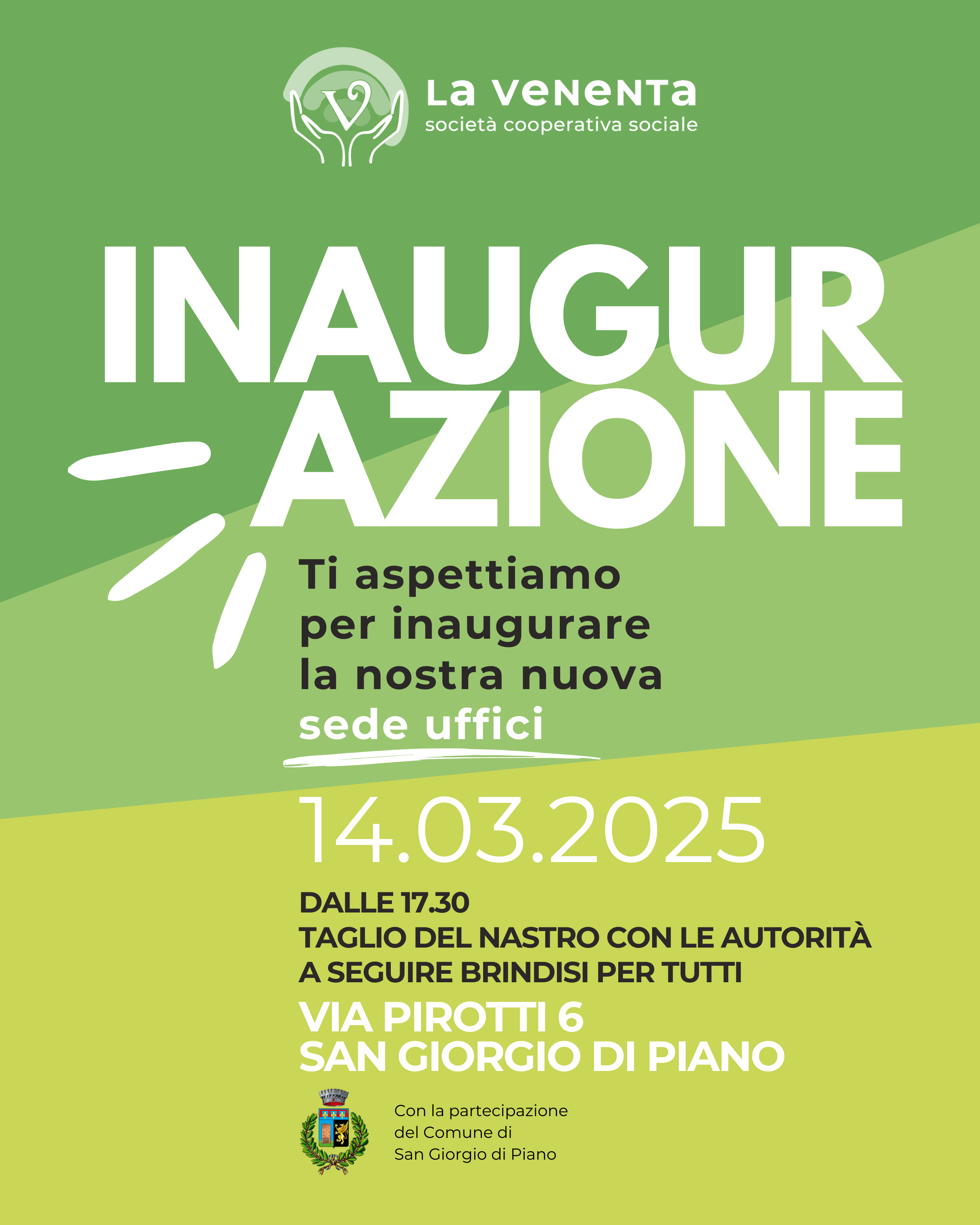 Un evento aperto a tutti, per condividere con voi la gioia di questo nuovo inizio e ringraziare chi ci ha supportato in questo percorso.