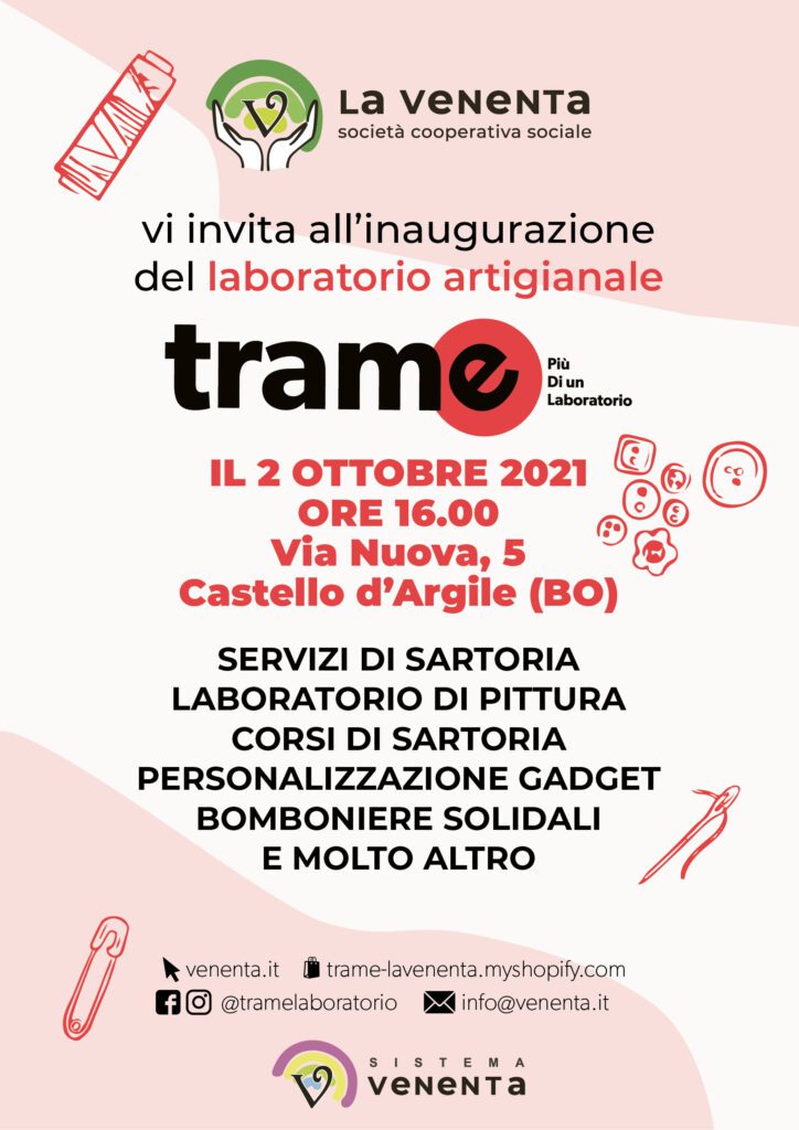 11 Ottobre 2021Il 2 ottobre dalle 16.00 a Castello d’Argile, si terrà l’inaugurazione del laboratorio artigianale TRAME.